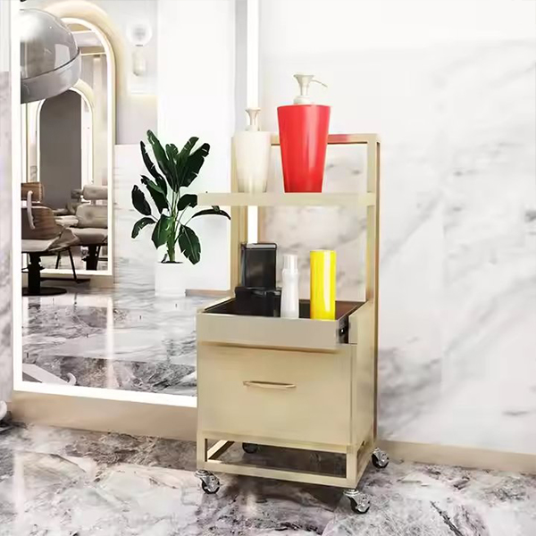 High Quality Luxury Barber Shop Trolley Cart Beauty Salon Equipment Gold Stainless Steel Saloon Trolley with Drawer and Wheel